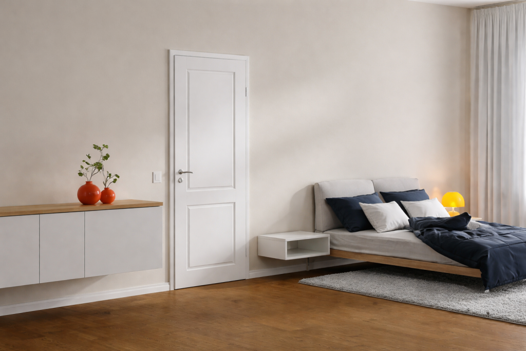 Das Design der Tür sollte zum Stil des Zimmers passen. Manche Türen haben ein Schloss, andere nur einen Griff. Eine gute Zimmertür ist praktisch und ein Teil der Einrichtung.